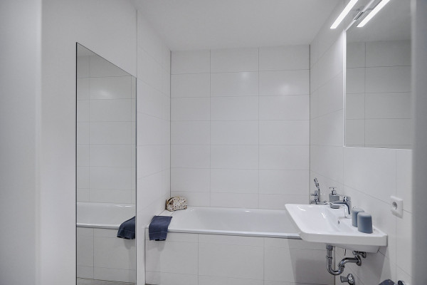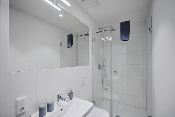 Auf zwei Etagen habt ihr sehr viel Platz, um zu entspannen, zu arbeiten und dem Alltag während eurer Übernachtung den Rücken zu kehren. Die hellen, hohen Räume wirken durch bewusst gesetzte farbliche Akzente wohnlich und komfortabel.