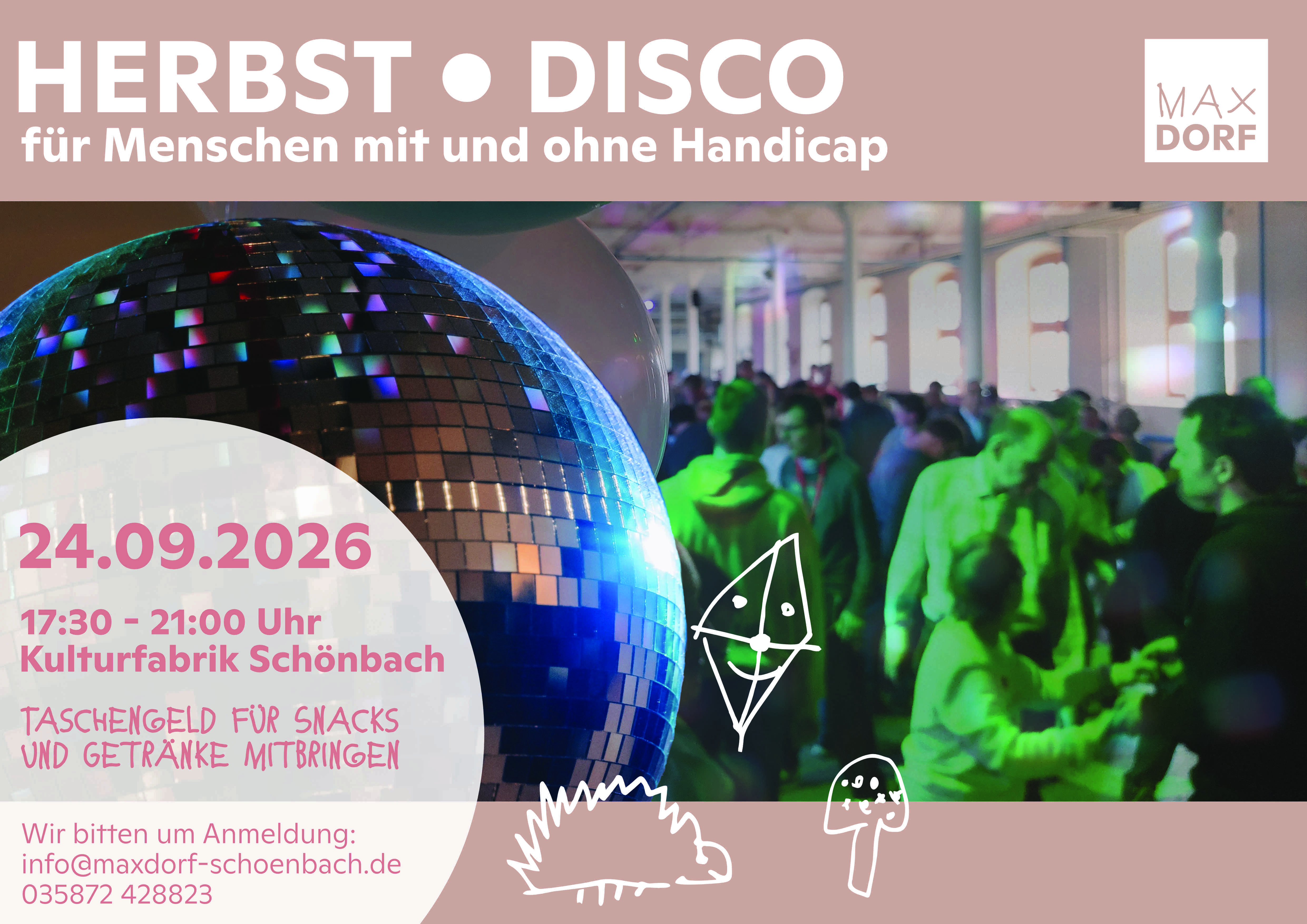 Wir laden ein zur inklusiven Disco in der Kulturfabrik Schönbach.